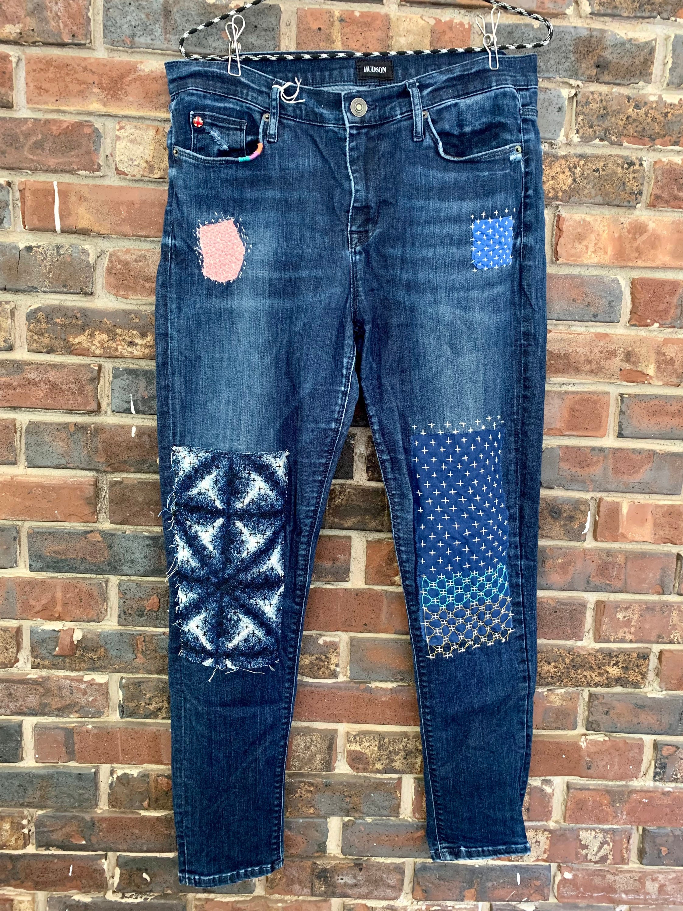 Reclaimed Denim Jeans With Sashiko Visible Mending Size 30 Etsy Uk